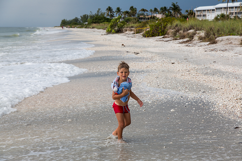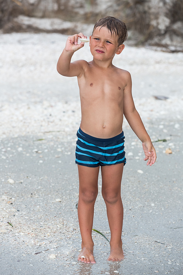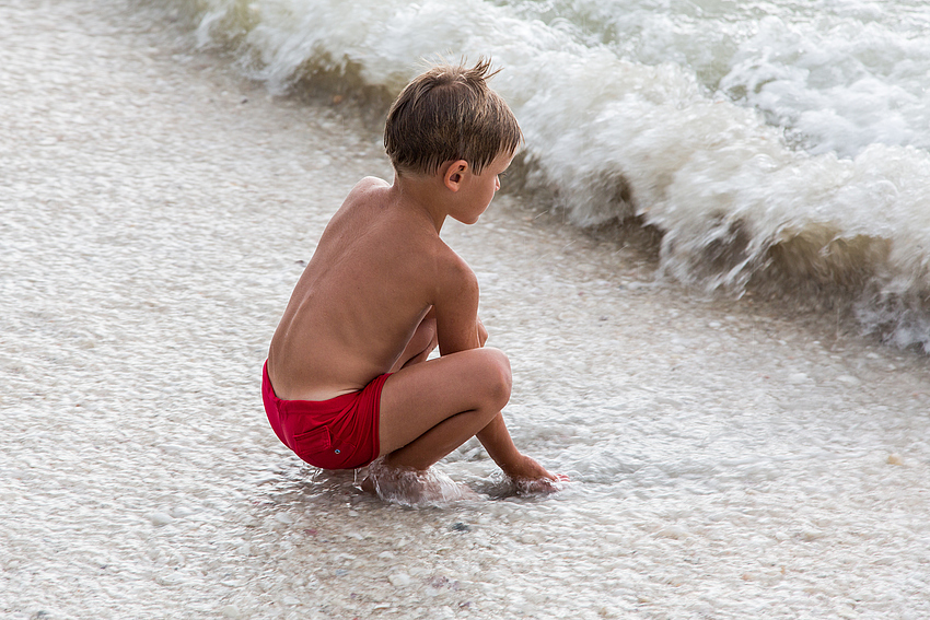 Und dann sahen wir sie endlich, Muscheln ohne Ende!!! Ich kannte Sanibel ja bereits aus meiner Florida Zeit 1993 sowie aus weiteren Florida Urlauben - aber es ist immer wieder beeindruckend, was hier an Muschelmassen an den Strand gespült wird. Wir liefen also in der typisch gebückten Haltung wie die blöden am Strand umher, und fanden dann auch das eine oder andere schöne Exemplar. Paul hätte vermutlich am liebsten den ganzen Strand mitgenommen, aber wir konnten ihm das einen oder andere nicht gaaanz so schöne Exemplar dann doch immer wieder ausreden. Zwischendurch ging es immer wieder ins Meer zum Wellen springen.