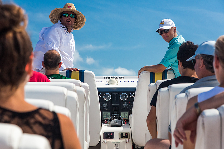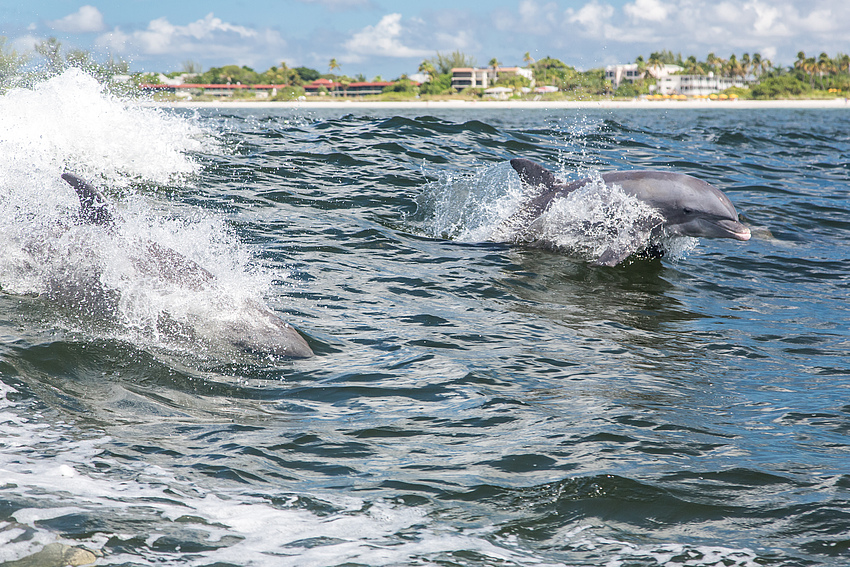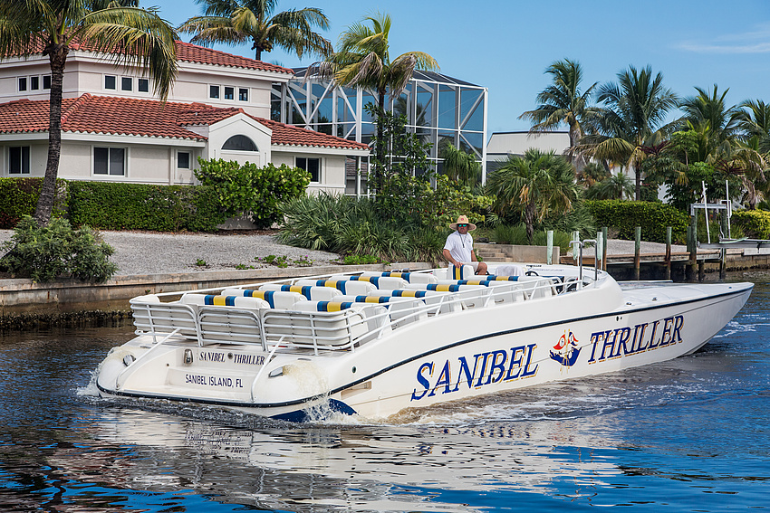 Wir hatten von der hintersten Reihe aus einen genialen und freien Blick auf die Delfine. Das lange Warten hatte sich daher absolut gelohnt. Nach einigen Minuten ging es weiter und wir fuhren wieder der Küste Sanibels entlang. Der Sanibel Thriller ist das einzige Boot, welches die beiden Inseln Sanibel und Captiva komplett umfährt.