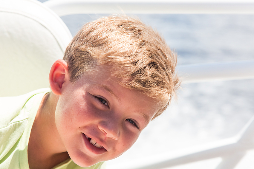 Birgit und die Kinder waren mittlerweile am „Pier“ und warteten auf den Start der Tour. Um 15.20 ging es dann endlich los, aber zuerst wurde eine Horde Schnorchler auf einem benachbarten Boot „eingecheckt“. Dann war auch unser Boot an der Reihe und nach einer kurzen Einweisung fuhren wir gemächlich den Kanal Richtung offenes Meer entlang. Nach ca. 15-20 Minuten kamen wir dann in offene Gewässer und der Captain gab richtig Gas.