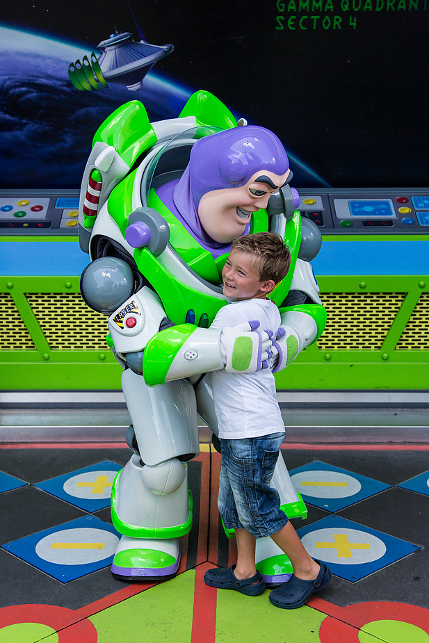 wieder ein Indoor Dark Ride, bei dem man mit Laserpistolen auf verschiedenste Zielscheiben schiessen kann. Je schwieriger, umso mehr Punkte gibt es. Dies hatte den Jungs bereits 2011 im Disneyland Anaheim super gefallen. Wie nicht anders zu erwarten, war es auch diesmal so. Die Wartezeit betrug hier ca. 25 Minuten.