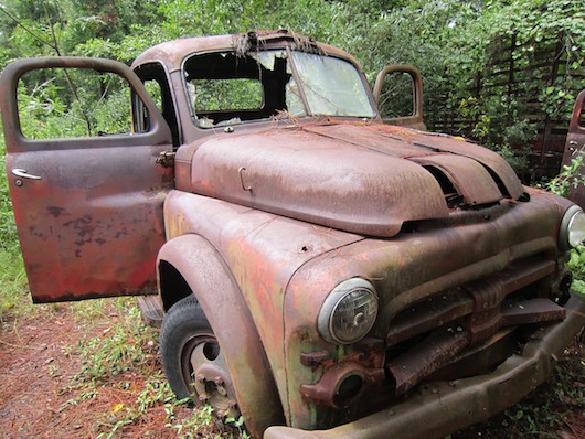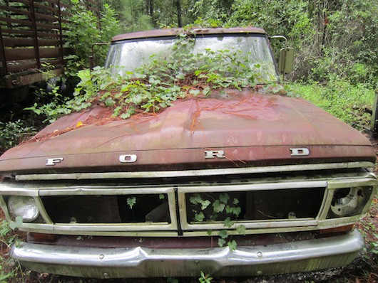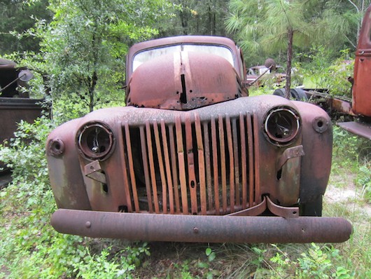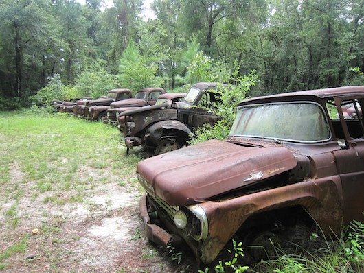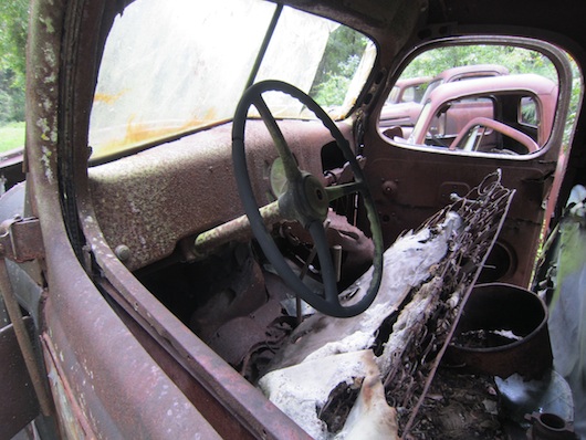 Ich wüsste zu gerne, wer diesen Autofriedhof auf der grünen Wiese mal angelegt hat... Oder ist das vielleicht Kunst?