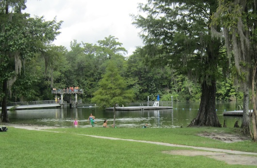 es gibt in der Quelle ein Schwimmbad, das scheint mir aber so gut abgetrennt zu sein, dass man mit den Manatees nicht in Berührung kommt. Und auch nicht mit den Krokos ... :wink: