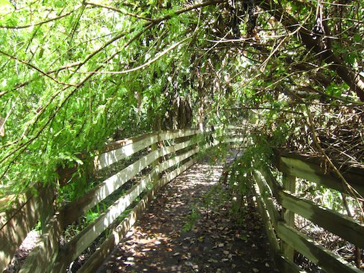 Aber gegenüber des alten Gebäudes gab es immer einen netten Weg durch den Dschungel bis hin zur Sumpflandschaft. Den Weg gibt's noch, allerdings wird er wohl nicht mehr so recht gepflegt, was das Abenteuer nur noch größer macht ...