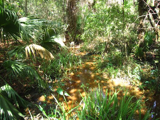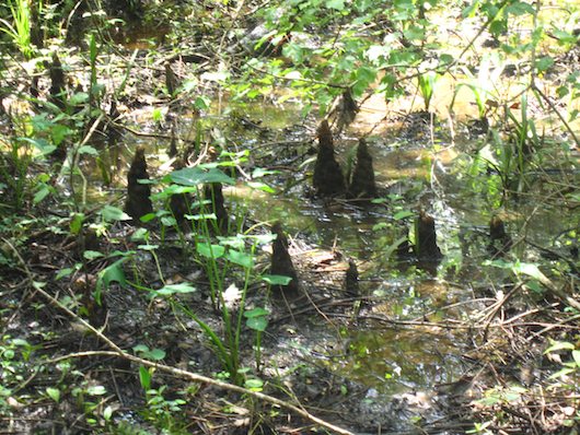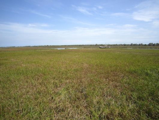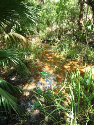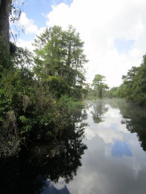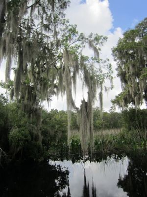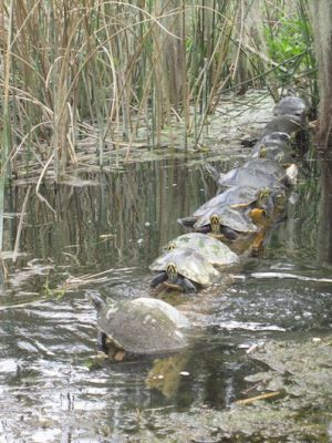 Wir befinden uns auf dem Festland, genauer: kurz hinterm Hafen von Apalachicola. Hier befand sich noch vor einigen Jahren die "National Estuarine Research Reserve (A Center for Education, Stewardship and Coastal Training)". Dieses nette Center, in dem man viel über die Ökologie der gesamten Bay-Area erfahren konnte, ist allerdings inzwischen umgezogen. (Es ist nun am Anfang der St.George Island-Bridge in ganz neuen schicken Gebäuden zu finden, auch das ein echter Tipp für alle, die mal in die Gegend kommen...)