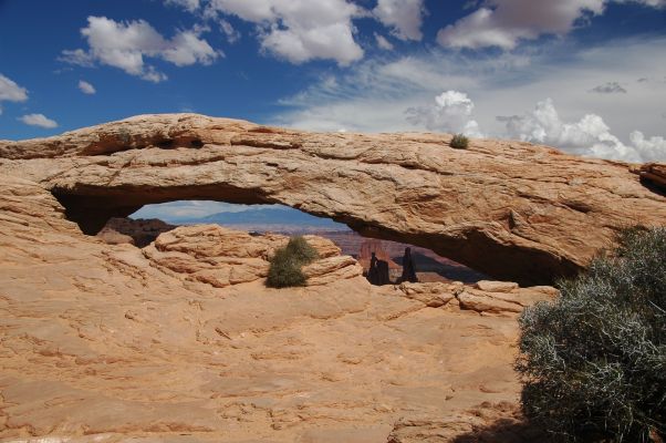 Die beiden amerikanischen Fotografen geben die Hoffnung nicht auf "It'll come!"und überzeugen das französische Pärchen. Uns nicht. Ich hoffe auf schöneres Licht am Grand View Point und wir verlassen den Mesa Arch. Im Weggehen bekommen wir noch die Verwunderung der beiden Amerikaner über die Menge der Europäer in den Parks (I saw hundreds of Germans yesterday :-D) mit....