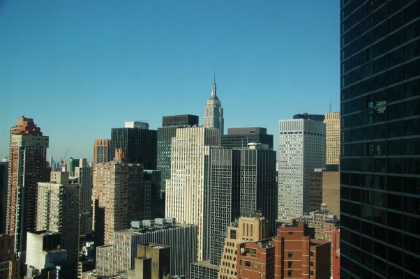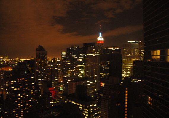An Ground Zero tut sich noch immer nicht viel, die Veränderungen seit 2006 sind kaum sichtbar. Nur die rundherum stehen Gebäude sind nicht mehr abgehängt. Mit diversen Unterbrechungen zum Zwecke der Nahrungs- und Flüssigkeitsaufnahme sowie der Betrachtung der feilgebotenen Ware laufen wir den Broadway bis sage und schreibe zur 54th Strasse hoch. Dort kommen wir gegen 20:30 Uhr an. Wir biegen Richtung Hotel ab und hoffen, noch auf frischgezapftes zu stossen. Finden wir auch in Form eines Pubs in der 2nd - hier ist aber viel zu laut und es stinkt. So halten eben ein Supermarkt und unser Hotelzimmer wieder her. Ist ja auch günstiger und ich kann Fotos sortieren und den Bericht schreiben. Nebenbei versuche ich noch ein Freihandfoto aus unserem Hotelzimmerfenster, gar nicht so schlecht.....