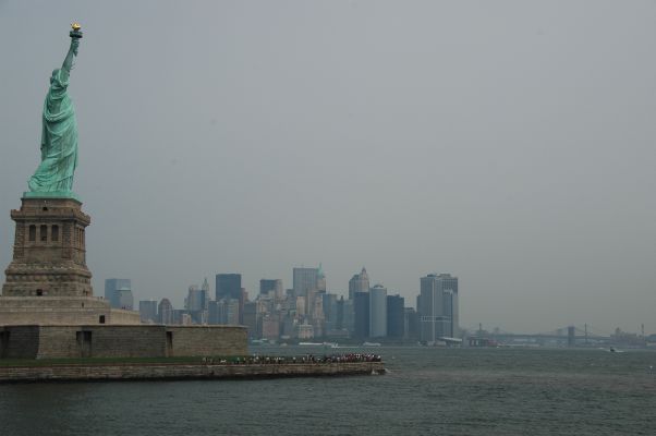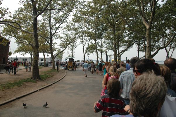 Morgen soll wieder Sonne scheinen - also fahren wir schon heute zu Liberty und Ellis Island. Meine Herzdame war ja letztes Jahr schon dort, als ich arbeiten musste, den ausführlichen Bericht findet Ihr bei Bedarf unter "Into the great wide open". Ich werde das hier höchstens noch ergänzen. Wie von Ihr geraten steigen wir in die Linie 1 und die die ersten 5 Wagen. Wir fahren bis zur South Ferry und erstehen mit 10 Minuten Wartezeit unsere Karten im Clinton Castle. Die Warteschlange zur Fähre scheint lang