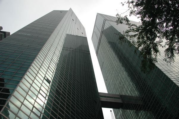 mit den Fotos der Skyline wohl nicht so schön. Erst mal ein Foto vor dem Hotel, damit ihr auch wisst wo wir stecken: im 30. Stock von diesem Bau hier: