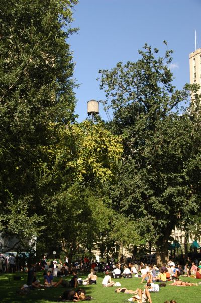 So verlassen wir die Insel wieder und haben nochmal Glück. Kaum stehen wir in der Schlange, schon kommt die Fähre. Nach knapp 30 Minuten sind wir wieder im Battery Park und beschliessen, ein wenig zu laufen (haben wir ja auf den Inseln noch nicht genug). Also den Broadway hoch.