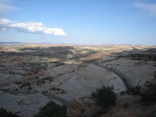 : der Hwy 261 bis kurz vor Mexican Hat. Die Strecke ist teilweise nicht asphaltiert, aber trotzdem mit einem PKW problemlos machbar. Unterwegs gibt es einen spektakulären Viewpoint. Leider kommt die Weite auf dem Bild nicht ganz herüber.