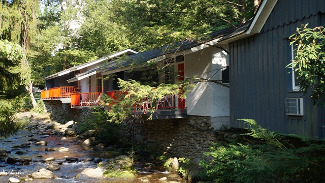 Unser Hotel lag ebenfalls direkt an einem Bach mit Balkon zum Wasser. Abends haben wir uns dann das Städtchen genauer angesehen. Auch hier scheint alles auf den Tourismus abgestimmt. Viele Country-Kneipen, schrille Museen à la Guinness-Record oder irgendwelche Gruselshows.