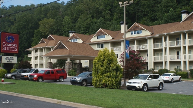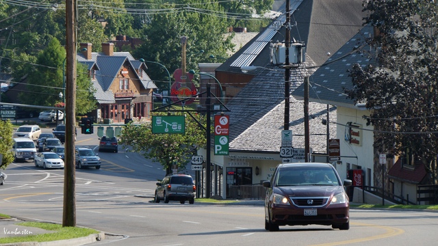 Später sind wir dann durchgefahren bis nach Gatlinburg. Kurz zuvor führte die Strasse durch Pigeon Forge. Allein das Durchfahren war ein Erlebnis. Unzählige Amüsierbetriebe säumen die vierspurige Strasse, von der Achterbahn bis zum Abenteuer-Minigolf, vom Countrymusikmarkt bis zum Elvis Presley-Museum. Wir hatten den Eindruck, das ist hier wie auf einem überdimensionalen Rummelplatz und einmal durchfahren reicht vollkommen.