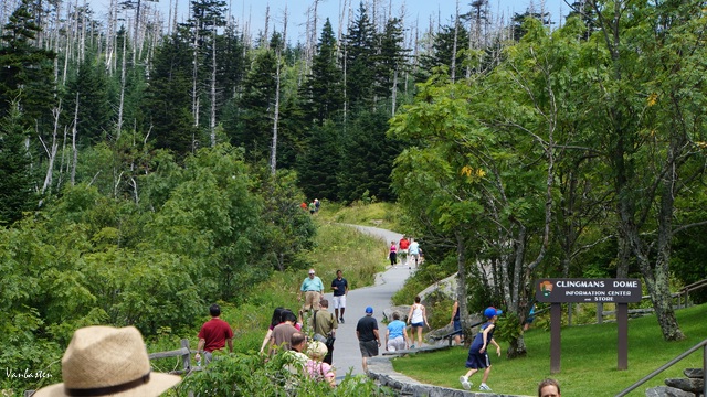 Zum Clingmans Dome, dem höchsten Berg im Nationalpark, kann man von einem großen Parkplatz über geteerte! Wanderwege zum Aussichtsturm spazieren.