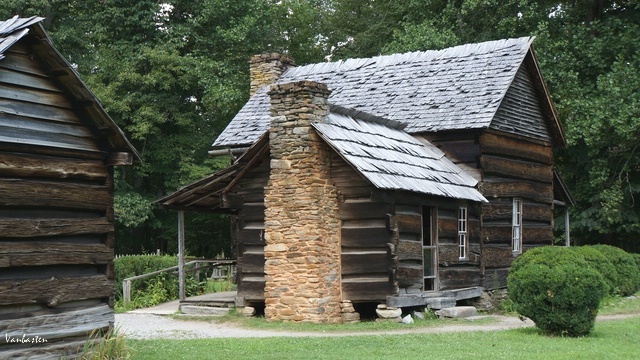 Dort bogen wir ab, zuerst zum Sequoyas Birthplace. Sequoya war ein berühmter Cherokee-Indianer, der in der Zeit der Belagerung der Indianergebiete durch die Europäer für seinen Stamm Schriftzeichen erfand und ihnen Lesen und Schreiben beibrachte. Ein kleines Museum erinnert an die Schicksale der Cherokee und auf dem Platz dahinter sind Indianerhütten und eine Gedenkstätte aufgebaut.