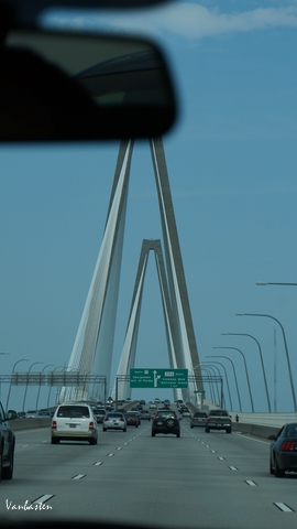 Es hat ein bisschen gedauert bis wir wieder aus dem Städtchen heraus waren und nach vielen weiteren Kilometer bergab durch die schöne Landschaft kamen wir bei Greenville auf die Interstate I-385 und danach auf die I-26 bis an die Ostküste nach Charleston (South Carolina –unser vierter Bundesstaat), wo wir zunächst über die herrliche Brücke nach Mt. Pleasant und weiter zum Strand in Sullivan’s Island gefahren sind.