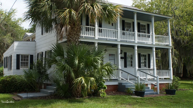 Wir unterhielten uns eine Weile mit einem Angler über den (schlechten) Fang ("too much sharks in the bay today....") und fuhren dann wieder zurück bis Beaufort wo wir den Wagen parkten und einen Stadtrundgang machten. Auch hier hat es in den engen Sträßchen nur Antebellum-Häuser, umrahmt von schönen, alten mit Spanish Moos behangenen Eichen und einigen Palmen.