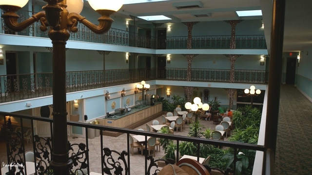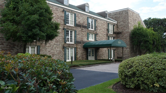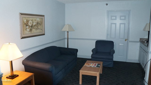 Da es leicht aber ständig regnete, entschieden wir uns über eine Parallelstrasse und weitere idyllische Plätze wieder zum Auto zurückzukehren und zum Motel zu fahren, das sich außerhalb vom Zentrum befand: das Oglethorpe Inn & Suites. Der Baustil war authentisch und passte perfekt zu den Südstaaten. Das Zimmer war wohltuend groß und hatte sogar eine separate Sitzecke und Schreibecke.