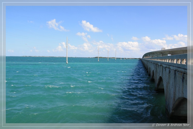 Am Eingang erfuhren wir jedoch, dass wegen des kräftigen Windes heute alle Boots- und Schnorcheltouren gecancelt wären. Nur zum Baden wollten wir die State Park Fee aber nicht bezahlen, daher drehten wir kurz entschlossen hinter dem Kassenhäuschen um und hofften, später beim John Pennecamp S.P. mehr Glück zu haben. Bis auf einige kurze Fotostops an diversen Brücken fuhren wir weiter bis Islamorada.