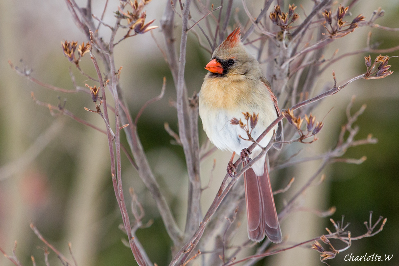 Frau Kardinal ist das geborene Fotomodel! Besser hätte sie ihren Platz fast nicht wählen können. Farblich passend zu ihrem Outfit!