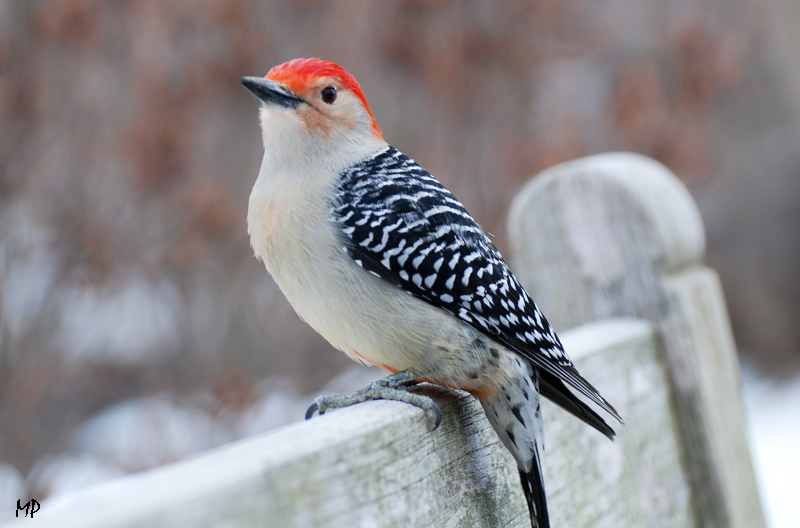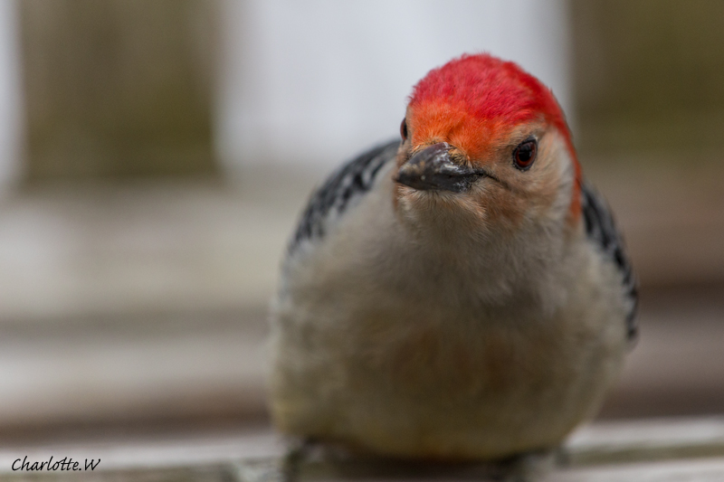 Der Red-Bellied Woodpecker gehört zu den Vögeln, die ich auf den ersten Buchblick wunderschön fand und unbedingt mal sehen wollte. Und während ich noch mit dem Blackbird vor mir auf dem Boden beschäftigt bin, höre ich plötzlich meine Freundin sagen, schau mal, auf der Bank! Sie meint die Bank, auf der sie sitz und zu deren Füßen ich mich gerade befinde. Ich drehe also meinen Kopf und