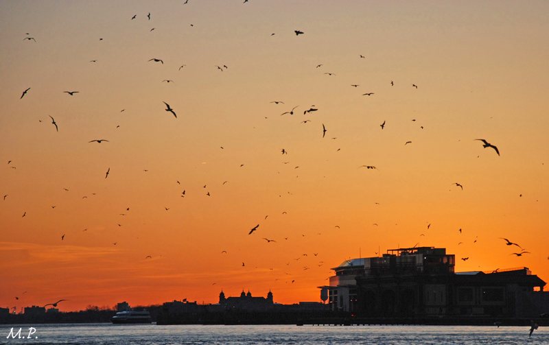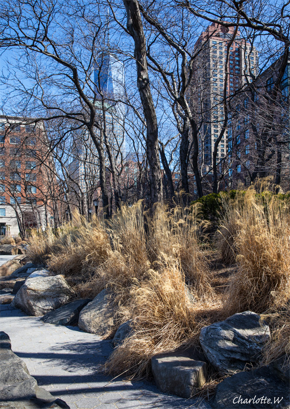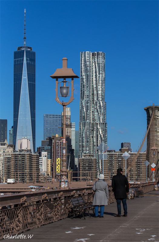 So langsam neigt sich der Spaziergang nun dem Ende. In einem Busch vor dem Bootshaus sehen wir noch einen Towee. Dann kehren wir ein - es gibt Pommes und anderes und wir sitzen noch ein bisschen zusammen und reden über Vögel und mehr. Mir fällt zum Glück ein, dass ich ja noch das Bild von dem Vogel aus dem Botanischen Garten habe, den ich nicht bestimmen konnte. Ich zeige es Bob und den anderen ... nach einer kurzen Diskussion ist man sich einige - es ist ein weiblicher Rose-breasted Grosbeak. Die Dame hat sich wohl den ganzen Winter im Botanischen Garten aufgehalten. Irgendwann wird es dann aber doch Zeit "Good-bye" zu sagen und sich auf den Weg zu machen. Da es nicht mehr so viele schöne Tage gibt und der Dienstag ja auch schon verplant ist, haben wir entschieden jetzt erstmal eine Pause im Hotel zu machen und dann zur Brooklyn Bridge und dem Pier dort zu fahren. Wir wollen dort den Sonnenuntergang erleben und dann noch im Dunkeln über die Brücke zurück nach Manhattan laufen.