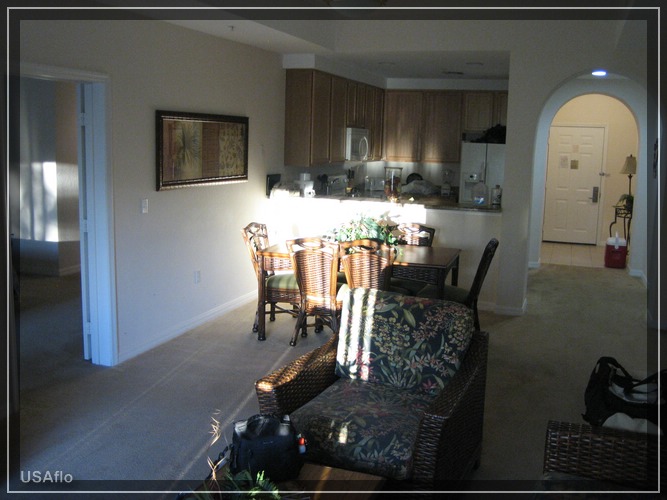 Dann zogen wir uns um und machten uns auf den weiteren Weg nach Orlando. Durch ein wenig Stau fuhren wir nach Kissimmee zum Caribe Cove Resort, wo wir die nächsten drei Nächte eine 160 qm Suite mit 3 SZ/2BZ, Balkon usw. gebucht hatten bei Expedia für 65 €/Nacht. Hinzu kommt noch eine Cleening Fee von 65 $ und ca. 6 $ Resortfee pro Tag, so dass wir vor Ort noch mal 93 $ = 67 € zahlten). Günstig (insgesamt 87 €/Nacht) ist es aber trotzdem.