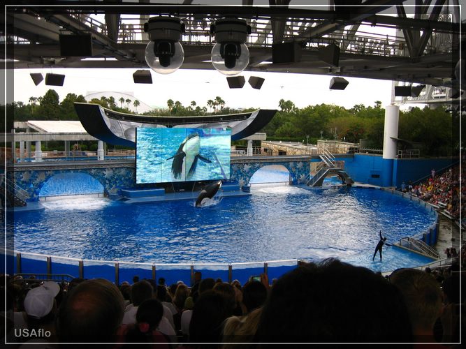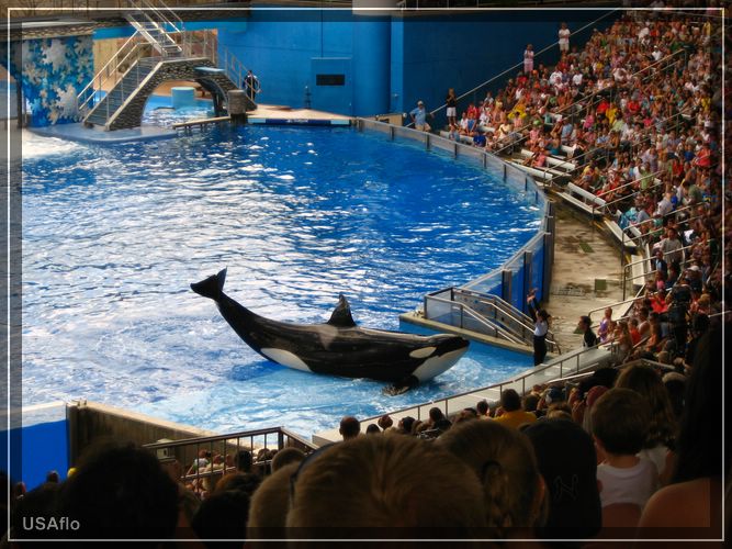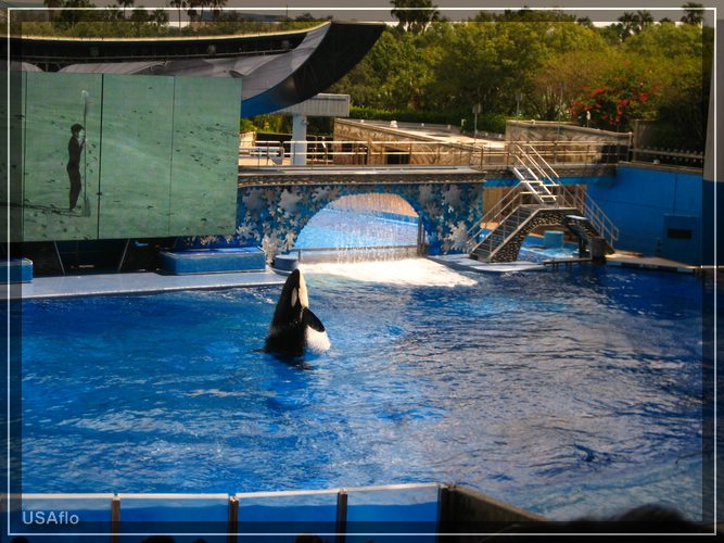 Die Show war dann wirklich ganz spektakulär, obwohl es vor dem Todesfall der Tiertrainerin im Februar ja noch besser gewesen sein soll. Wir hatten uns schön weit oben außerhalb der Splash-Zone hingesetzt und wurden so auch nicht nass.