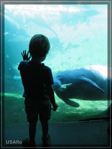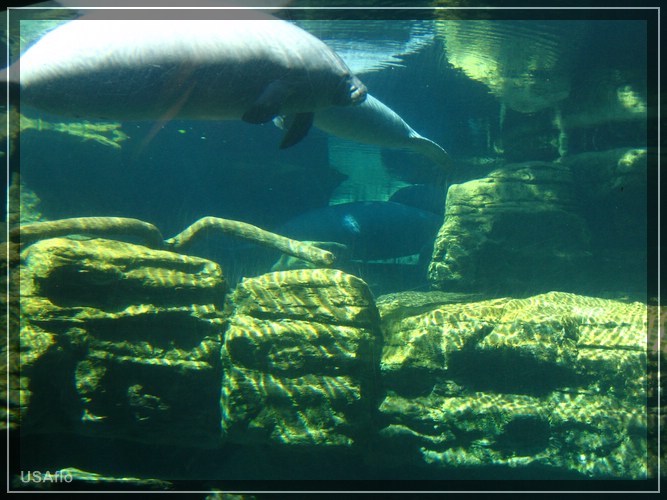 Danach ging es zu den Alligatoren, Manatees und Delfinen. Insbesondere die Manatees und Delphine konnte man toll von unten durch Glasscheiben betrachten.