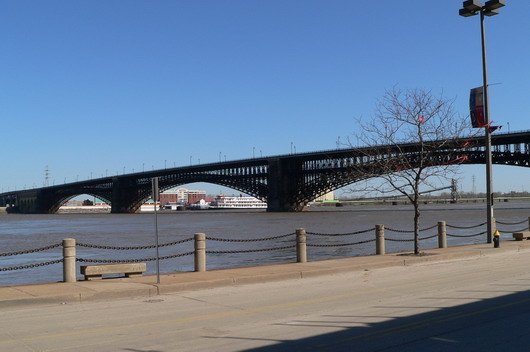 Wir hatten dann vor, den Mississippi entlang nach Saint Louis zu fahren, auf der Straße 79, der Great River Road. G. wollte nach St. Louis, um sich die Eads Bridge über den Mississippi anzuschauen, die 1874 fertig gestellt wurde, und an deren Bau Lucky Luke maßgeblich beteiligt gewesen war (Band 68).
