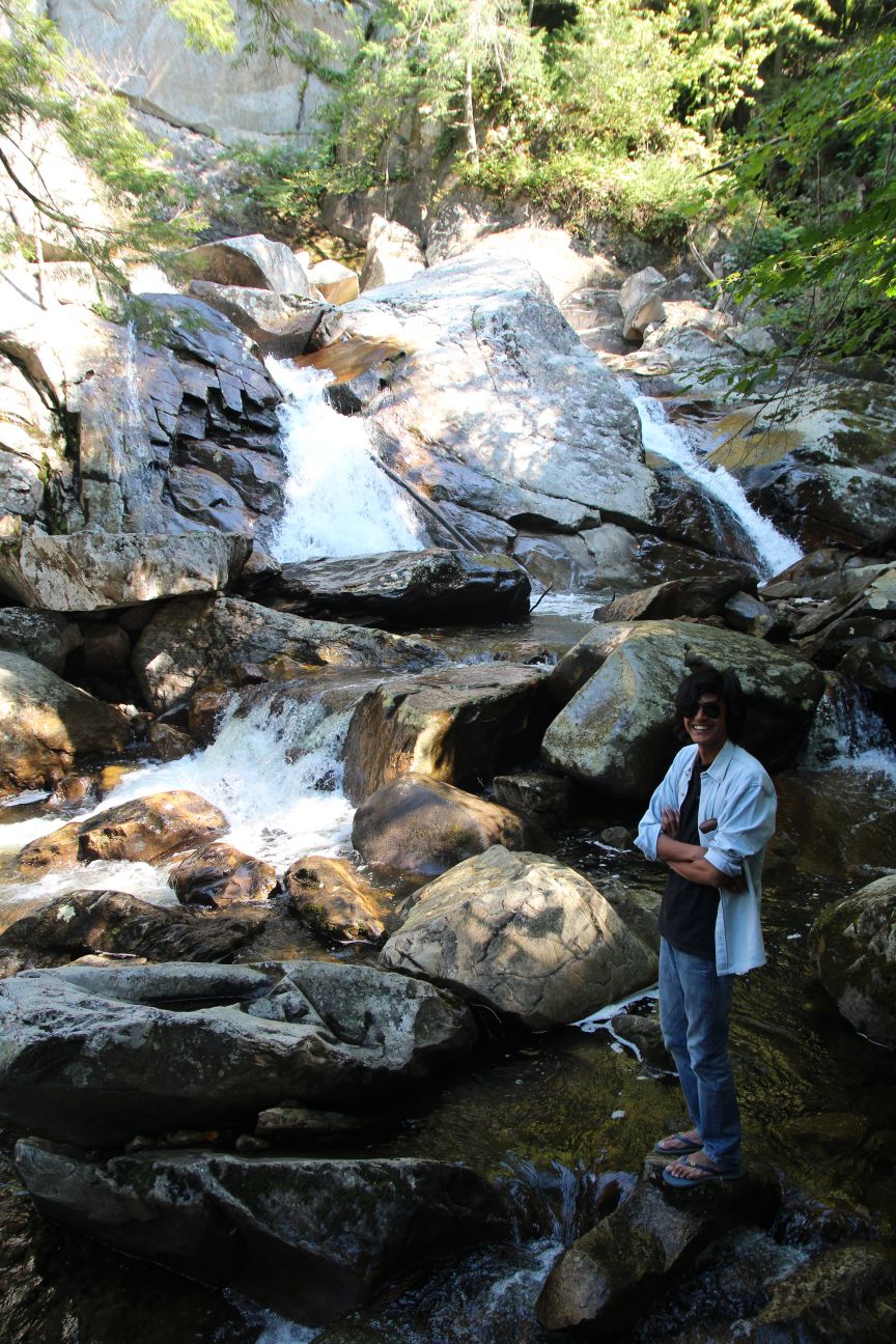 Dass Ithaca auch eine Studentenstadt ist (Cornell University), stellten wir fest, als wir zum nächsten Wasserfall fuhren. Mitten im Campusbereich stellten wir das Auto ab und spazierten etwas sowohl auf dem Unigelände herum als auch zu einigen Wasserfällen. Es muss relativ kurz nach Beginn des neuen akademischen Jahrs gewesen sein und man sah wie die Stadt und der Campus voller wuselnder Studenten war, viele davon sicher auch Freshmen, also die neuen Studenten. Der eine Wasserfall auf dem Campus war nicht so wunderschön, so dass wir dann nach unserem kleinen Spaziergang zum Auto liefen und zu unserem Schlafplatz in einer etwas weiter entfernten Stadt fahren wollten. Zufällig sahen wir aus dem Auto aber dann noch einen wunderschönen, großen Wasserfall, so dass wir spontan anhielten und in dessen Flussbett entlangspazierten. Die Stimmung war herrlich und im goldenen Abendlicht saßen wir auf großen Steinen im glitzernden Bach und genossen die Stimmung, ein sehr gelungener Abschluss von dieser Gegend.