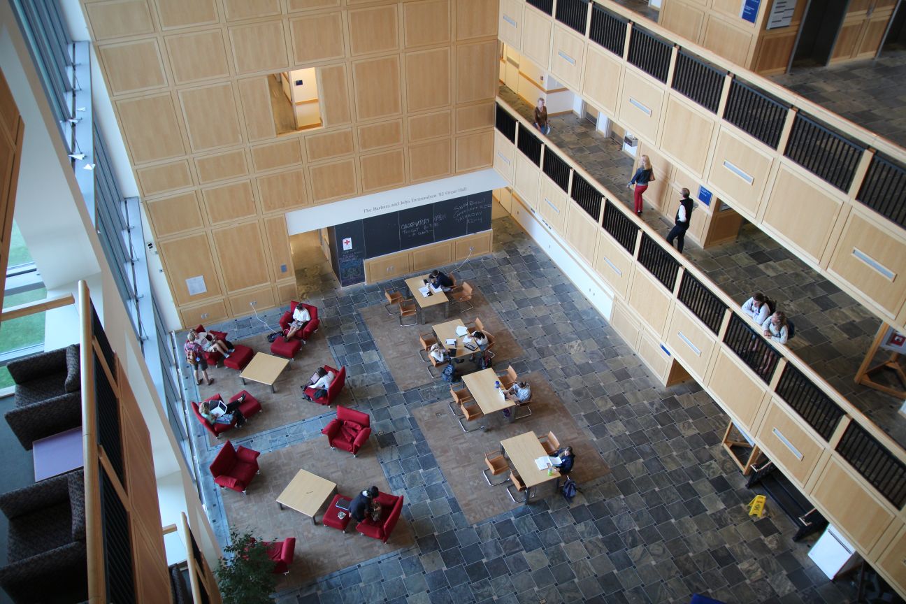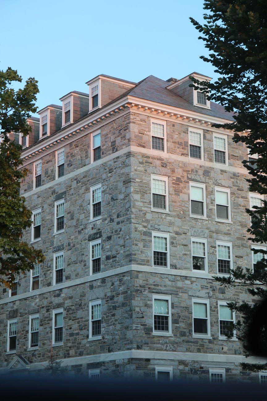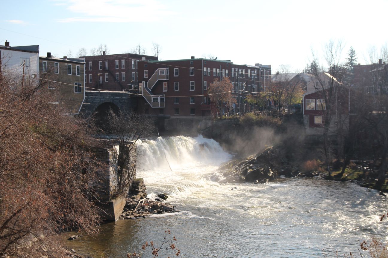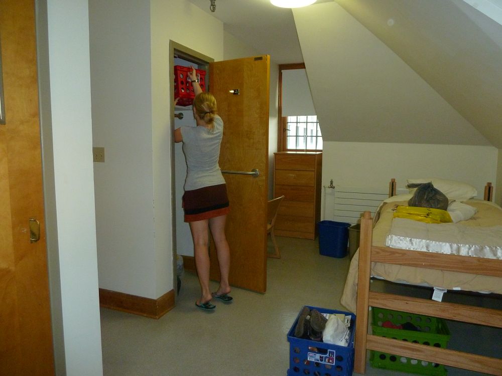 Am nächsten Morgen aßen wir leckeres selbstgemachtes Frühstück (Joghurt, Obstsalat mit Minze, Omlett mit Fetakäse und Spinat und geröstetem Brot) mit anderen Gästen, die zufälligerweise auch Kinder zum Middlebury College bringen. Wir erkundeten die Stadt, liefen durch die Main Street, schauten den Wasserfall in der Stadt an, erforschten den besten Laden der Stadt – den Bioladen (ich bin ja eigentlich nicht für so was, aber dort gibt es europäisches Essen und vernünftiges BROT!!!) – und holten meinen Studentenausweis/Schlüsselkarte, meinen Zimmerschlüssel und mein Willkommenspaket beim College ab. Wir brachten ein paar Sachen in mein noch richtig leeres Doppelzimmer im fünften Stock und fuhren dann noch einmal die größere Umgebung der Stadt ab – es gab zwei weitere Supermärkte und die einzigen Kettenrestaurants, die die Stadt erobert hatten, waren McDonalds, Subway und Dunkin Donuts.