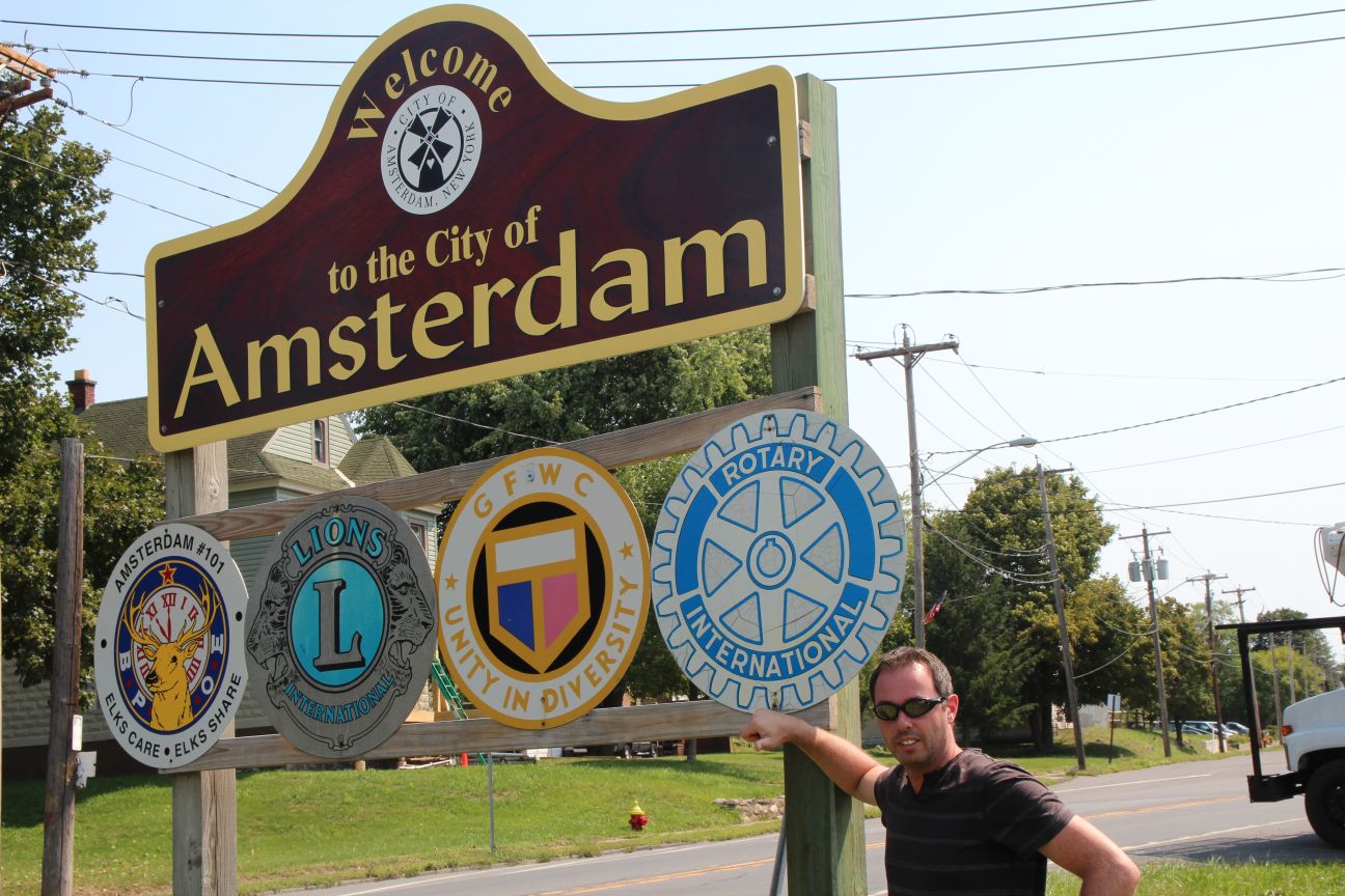Nach einiger Zeit entschieden wir dann, dass wir keine Lust mehr auf die Autobahn hatten, fuhren also ab und tuckerten über die Dörfer. Wir kamen unterwegs durch die kleine Ortschaft Amsterdam im Staat New York, machten natürlich Fotos vom Ortseingangsschild, die Stadt selbst war aber nicht sehr sehenswert.