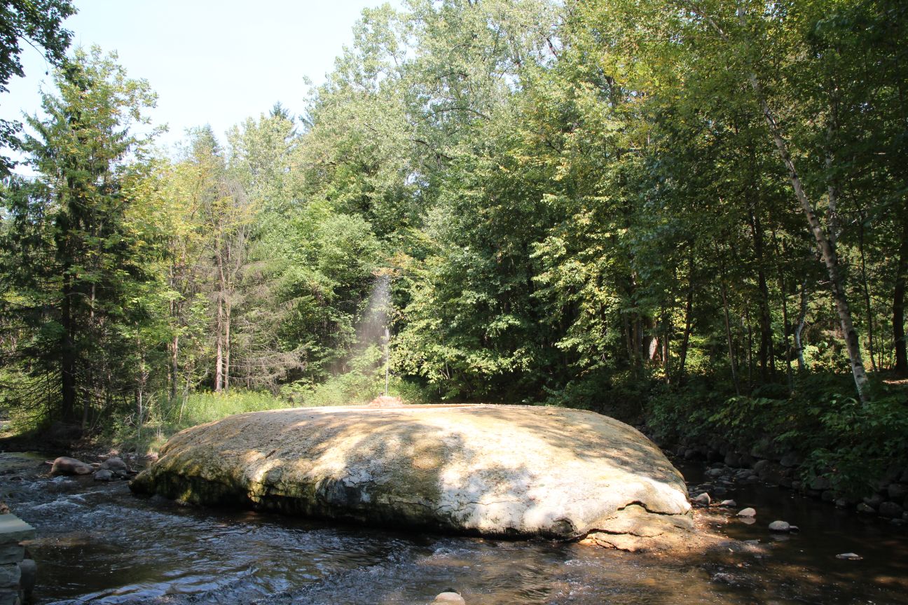 Es gab selbst auf dieser Strecke keine großartigen Sehenswürdigkeiten am Wegesrand bis wir dann den Saratoga Springs State Park erreichten, der im Reiseführer nur mit ein paar Worten beschrieben war. Eins dieser Worte war jedoch: „Geysir“, was in mir direkt Alarm auslöste – da müssen wir hin!   :nixwieweg:  Nachdem wir unsere 8 Dollar entrichtet hatten, stellten wir dann fest, dass gar keine Geysire ausgeschildert waren – sehr seltsam, aber schauen wir mal. Wir hielten auf einem Parkplatz aus, der mit einem tollen Pavillon und den schönsten Restrooms aller State Parks der USA bestückt war, liefen über die Straße (sahen ein Murmeltier!) und durch einen Wald und erreichten dann den „Spouter“: eine künstliche Fontäne mit einer künstlichen Salzablagerung drumherum in einem Tümpel im Wald.  :doesig:  Wir ließen uns nicht entmutigen, fuhren zum nächsten Spouter/Geysir, der ebenfalls aus einer Fontäne bestand, dieses Mal aber in einem Bächlein. Drumherum war ein riesiger Salzstein, aber nach der ersten Erfahrung trauten wir der ganzen Sache nicht mehr und versuchten zu erkennen, ob es Beton sein könnte…  :kloppen: