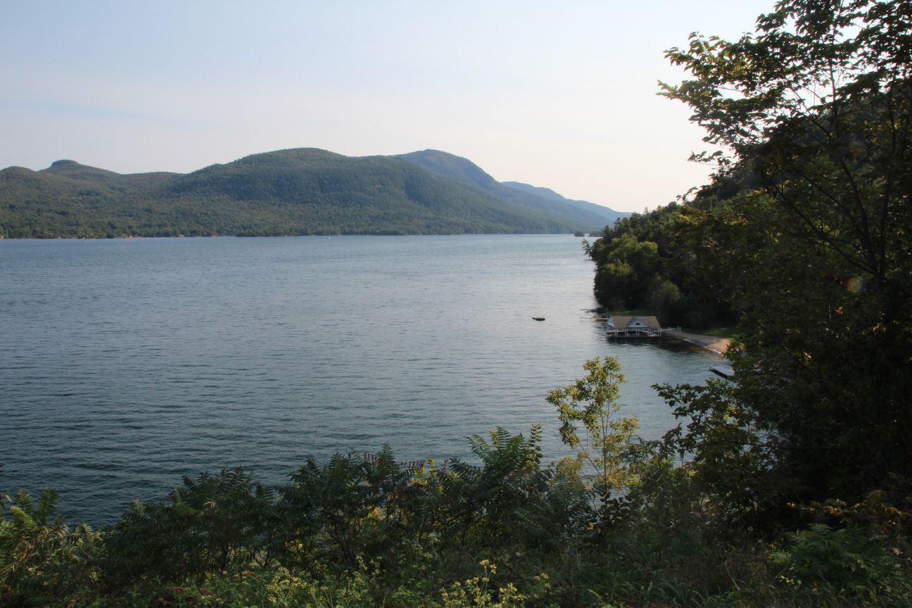 Außerdem gab es eine Pumpe mit Salzwasser, angeblich natürlich aus der Erde gefördert. Wir waren eigentlich ein bisschen enttäuscht, schauten uns dann noch die zwei Schwimmbäder an, die auf der Karte eingezeichnet waren (Freibäder, für die man extra bezahlen musste), zuckten dann mit den Schultern und fuhren weiter.  :zuck:  Also den Park kann man sich irgendwie sparen. Nach einer kurzen Tour mit dem Auto durch den Kurort Saratoga Springs (sehr reich, viele Villen, viele Golfklubs und Hotels) war wieder ein Stück Interstate angesagt. Langsam wurde die Gegend bergig und schließlich verließen wir dann die Interstate und fuhren in die Ortschaft Lake George am gleichnamigen See, die im Reiseführer als sehr kitschig beschieben wurde. Wir befanden uns jetzt schon in den Adirondacks, einem riesigen Wildnisgebiet, das den gesamten nördlichen Teil des Bundesstaates New York einnimmt. Wir parkten und spazierten and er Promenade entlang: ja, eine schöne Stadt, sehr kitschig, aber nichts zum länger dableiben.