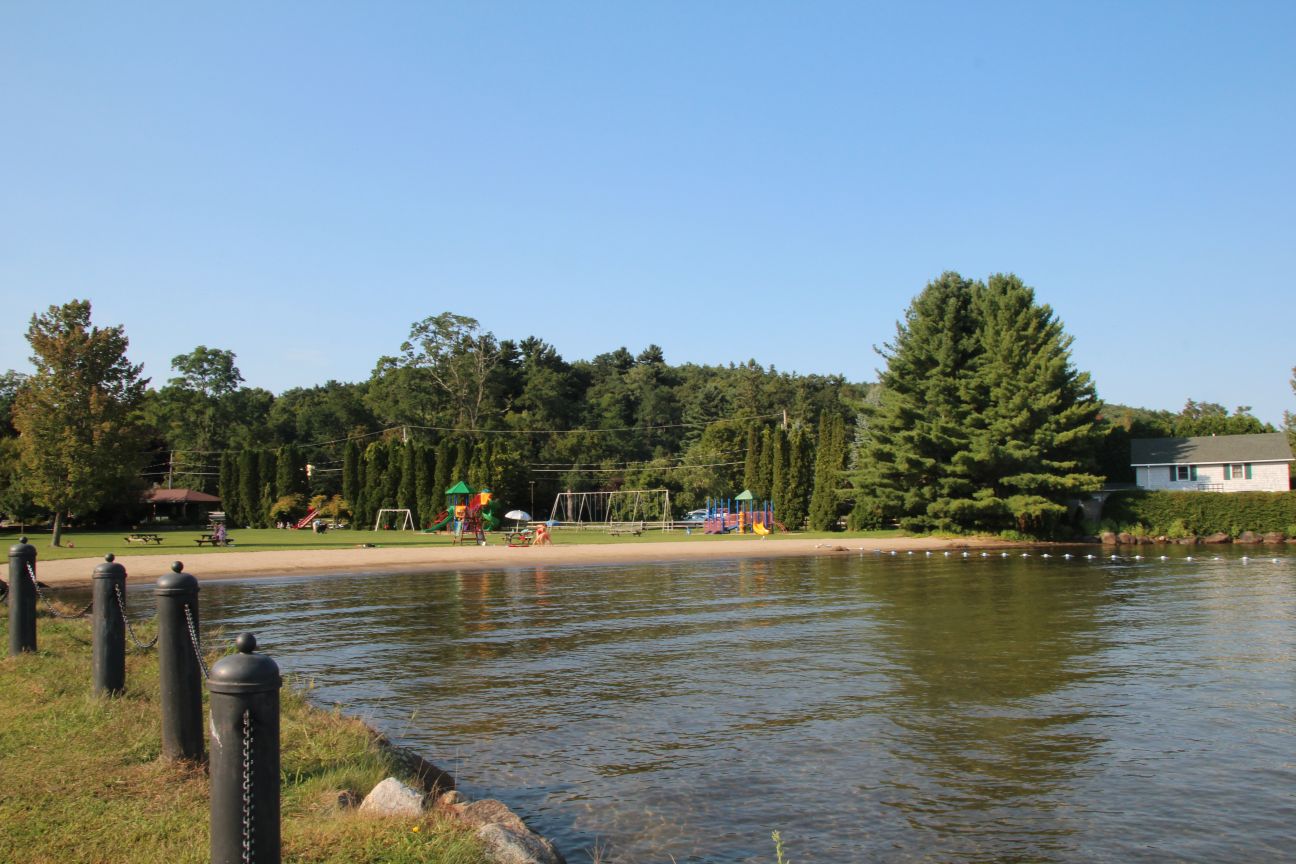 In Hague fanden wir dann endlich unsere Badestelle: es war zwar auch wieder eine abgezäunte Badestelle mit einem Lifeguard, aber es waren kaum Leute zu sehen und der kleine Park drumherum und die Mini-Marina waren supergepflegt. Perfekt für uns! Wir nutzten die Gunst der Stunde und verbrachten eine Dreiviertelstunde im kühlen, klaren Nass, auch wenn man nur zum Bauchnabel reingehen konnte, denn dahinter war schon wieder abgezäunt & verboten.