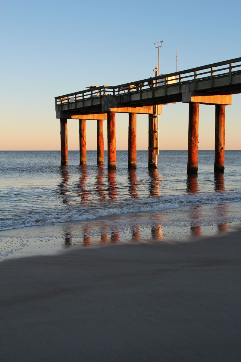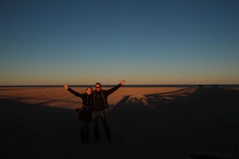Bald fuhren wir weiter und erreichten dann Jacksonville, die flächenmäßig größte Stadt der USA. Nachdem wir eine halbe Stunde lang über einen Mega-Highway die Stadt durchquert hatten, kamen wir auch bald zum Abzweig zu unserem Nachtquartier, St. Augustine (die älteste Stadt der USA!). Pünktlich zum Sonnenuntergang erreichten wir den Strand, an dessen Promenade unser Motel lag (trotzdem super-billig!) und genossen im letzten Abendlicht unseren ersten Strand in Florida.  :palme: