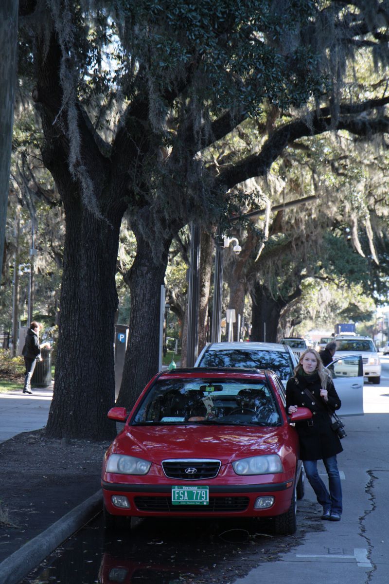 Als wir morgens aufstanden, war das Auto nicht von Möbelstücken zertrümmert – gottseidank. Leider war, es wie wir beim Einräumen bemerkten, auch eisekalt draußen.  :bibber:  Unser Plan war, heute Savannah anzuschauen, eine weitere alte Südstaatenperle, die laut dem Reiseführer aber nicht ganz so süß und hübsch wie Charleston ist, sondern auch mit einem hässlichen Gesicht, aber wir wollten uns selbst ein Bild machen.