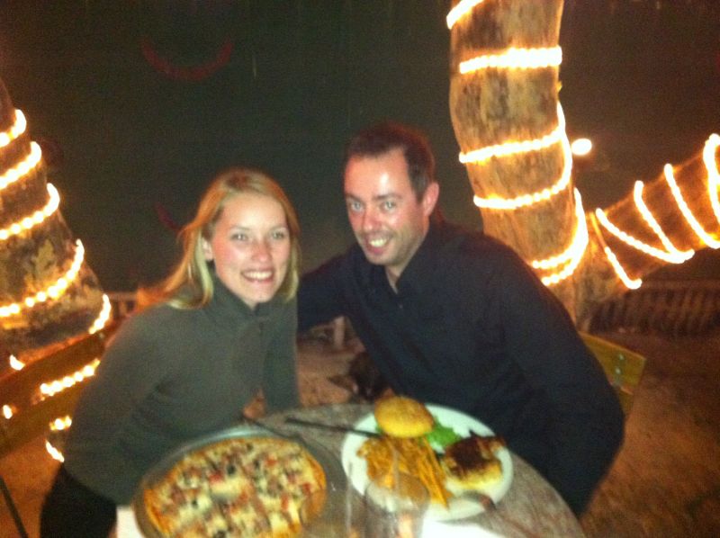 Das beste war aber der Milchshake-Stand, wo man sich sämtliche Zutaten für den Milchshake aus lauter frischen, exotischen Früchten aussuchen konnte und er dann frisch für einen gemacht wurde (wir hatten einen mit Papaya, Passionsfrucht, Kokosnuss, Ananas, usw.). Außerdem ließen wir uns eine Frucht aufschneiden „zum gleich essen“, deren Namen wir aber nicht wussten. Die Frucht hatte die Form einer Birne, war außen bräunlich; die Schale schmeckte wie die einer Gold-Kiwi und das innere schmeckte leicht matschig und sehr süß und hatte die Farbe von einer reifen Birne.