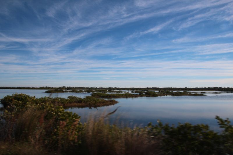 Während der weiteren Fahrt änderte sich die Vegetation drastisch, denn plötzlich fuhr man durch Mangrovenwälder, die aber von der Straße aus aussahen wie guter, alter mitteleuropäischer Mischwald. Vom typischen grasigen Everglades-Anblick keine Spur. Als wir jedoch bei einem Mangroven-Boardwalk anhielten, betraten wir den Wald und sahen rings um uns herum riesige Luftwurzeln und Sumpf, der nahtlos in offenes Salzwasser überging, und das nur wenige Meter neben der Straße, die wir eben noch für durch einen Wald führend hielten.