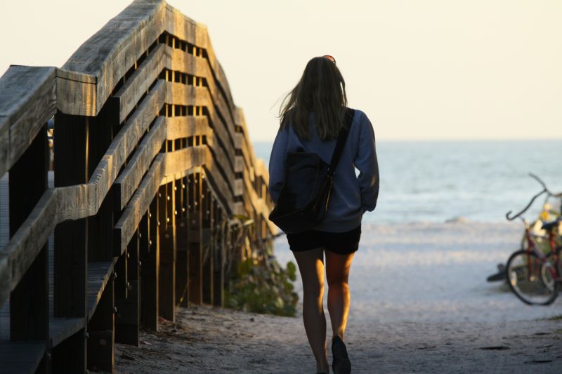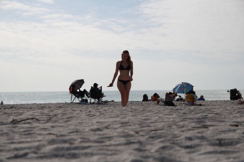 Bald erreichten wir die Brücke nach Sanibel Island, die uns zunächst übers Wasser, und dann entlang von schönen Stränden links und rechts der Straße auf die Insel führte. Für klassische Touristenregion fanden wir, dass die Insel sehr wenig bebaut war, und einen enormen Anteil an „Urwald“ hatte, und fuhren fast bis ans Ende der Insel, um dort am Bowman’s Beach zu parken. Der Parkplatz war recht voll, doch mit dem kleinen kompakten Hyundai passt man ja überall rein. Wir lösten ein Parkticket für abzockerische 6$, packen unsere Strandsachen und machten uns auf den Weg. Dazu musste man erst wieder durch Küstenwald laufen, anschließend über eine Brücke und durch einen Mangrovenwald und dann erst erreichte man den Strand. Doch es lohnte sich, denn der Sand war schneeweiß und der Strand sehr schön. Leider war es für amerikanische Verhältnisse ziemlich voll, doch wir suchten uns ein schönes Plätzchen und breiteten uns aus.  :wink: