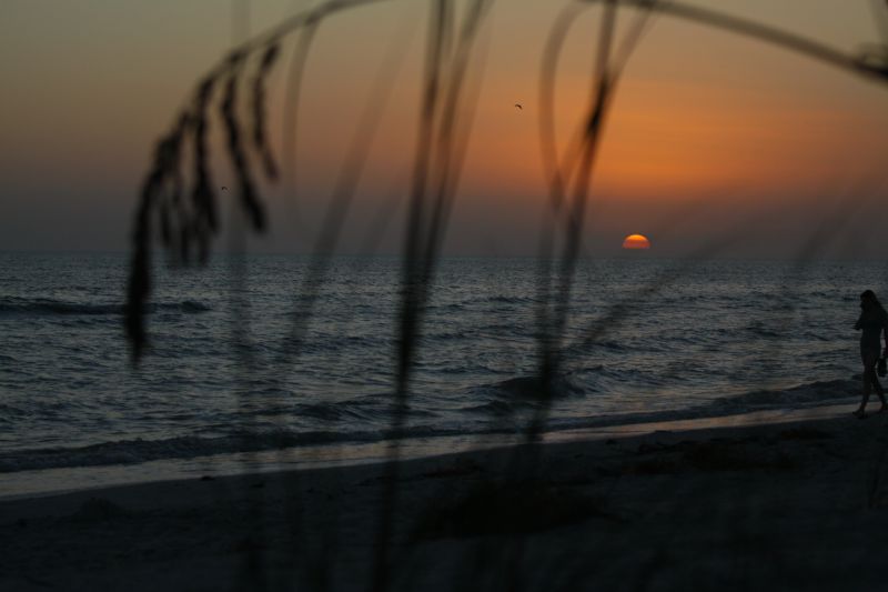 Wir fuhren den Drive entlang, machten ein paar Fotos und einen Mangroven-Boardwalk und verließen den Park gerade pünktlich zum Sonnenuntergang. Wir fuhren jetzt zu einem anderen Strand, Tarpun Bay Beach, und setzten uns zwischen das hohe, schöne Dünengras.