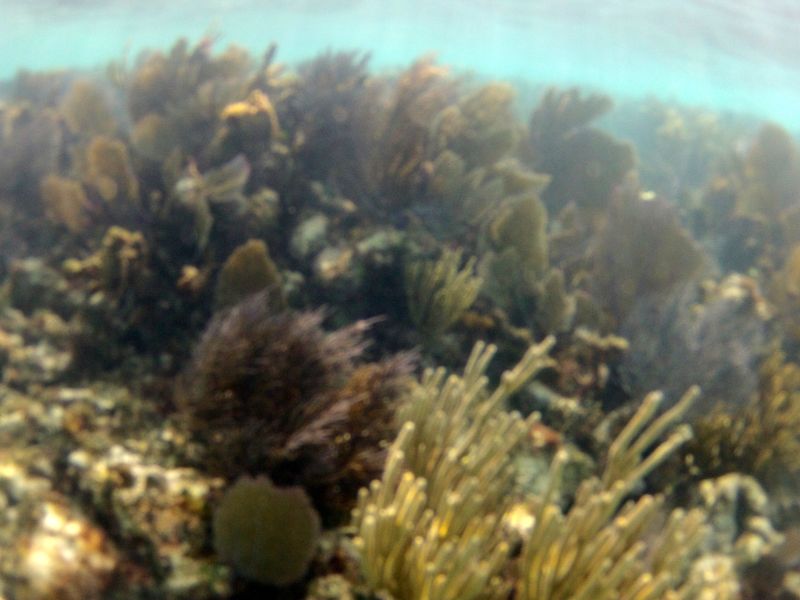 Bereits beim ersten Blick unter Wasser sahen wir eine unglaubliche Artenvielfalt an Fischen und bunten Korallenriffen.  :dance: Die Korallen hatten ganz verschiedene Formen: manche hatten nur dünne „Zweige“ und zitterten in der Strömung, andere sahen aus wie große Fächer, manche sahen aus wie ein Gehirn; viele waren braun, gelb oder lila. Anhand unserer Bestimmungskarte wussten wir, dass wir Papageienfische, Tarpune, (gelbe) Schnapper, Meerbarben („Goatfish“), Seeigel, Trompetenfische, einen großen Barrakuda und viele andere, strahlend bunte Meerestiere gesehen hatten.