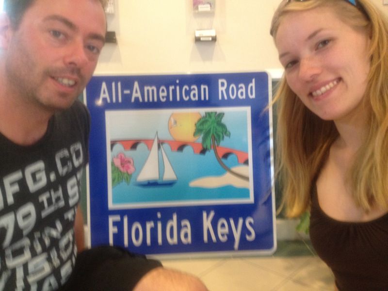 Das ist der südlichste Punkt der kontinentalen USA (an der Stelle, wo der Marker dafür steht, ist eigentlich gar nicht der geographisch südlichste Punkt, aber was soll’s) und and dieser Stelle ist man nur noch 90 Meilen von Kuba entfernt! Dort war bereits zu so früher Morgenstunde die Hölle los und die Leute standen Schlange, um Fotos vom Marker zu machen. Wir schafften es, zwei Fotos vom Marker von vorne zu schießen, auf denen keine Touristen zu sehen waren – leider aber auch nicht wir. Und so machten wir, trickreich wie wir sind, ein Foto von uns an der Rückseite des Markers.  :lol: