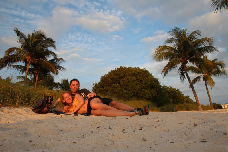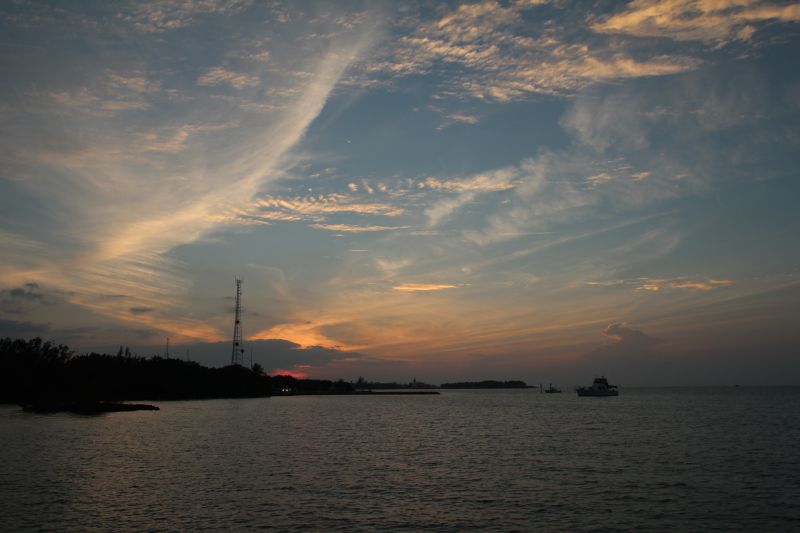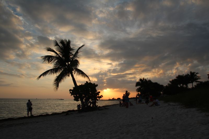 Schon bald waren wir wieder auf der Straße und stellten das Navi auf Key West, der letzten Insel der Kette, ein, wobei wir feststellten dass wir es nur ganz knapp zum Sonnenuntergang schaffen würden. Als wir dann nach recht kurzer Fahrt auch noch im Stau standen, einer Art „ganz Florida fährt auf die Insel“-Stop-And-Go,  :umherschau: verabschiedeten wir uns endgültig vom Sonnenuntergang und entschieden uns, uns unterwegs Zeit zu lassen. So fuhren wir eine ganze Weile, Inseln und Brücken wechselten sich ab und links und rechts konnte man spätestens nachdem wir Key Largo verlassen hatten die endlosen Weiten des karibischen Meers sehen, nur unterbrochen von ein paar vereinzelten Mangrovenbüschen. Der nächste Stopp war dann Sombrero Beach auf Marathon Key, wo wir uns ein bisschen auf den weißen Sandstrand legten (zum Baden war es uns zu kalt, und wir waren ja schon baden heute ;-)) und uns eine Stunde lang die Sonne auf den Pelz scheinen ließen.  :sun: