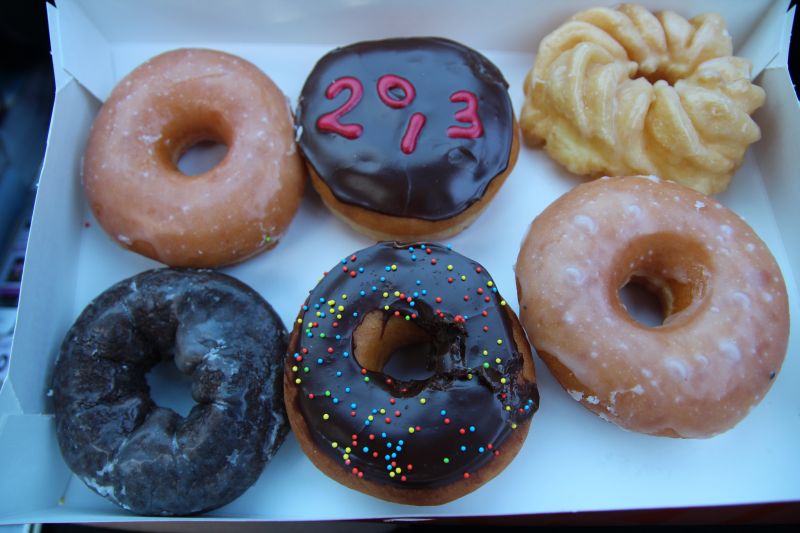 Am Neujahrsmorgen ließen wir es natürlich ruhig angehen und schliefen bis um 10 Uhr aus. Zu um 11 checkten wir aus und waren wieder „on the road“. Als erstes mussten wir tanken, danach wollten wir etwas zum Frühstück auftreiben – und neben der Tankstelle war ein Dunkin Donuts, wo wir uns ein 6er-Pack Donuts holten und sie genüsslich verputzten.  :burger: