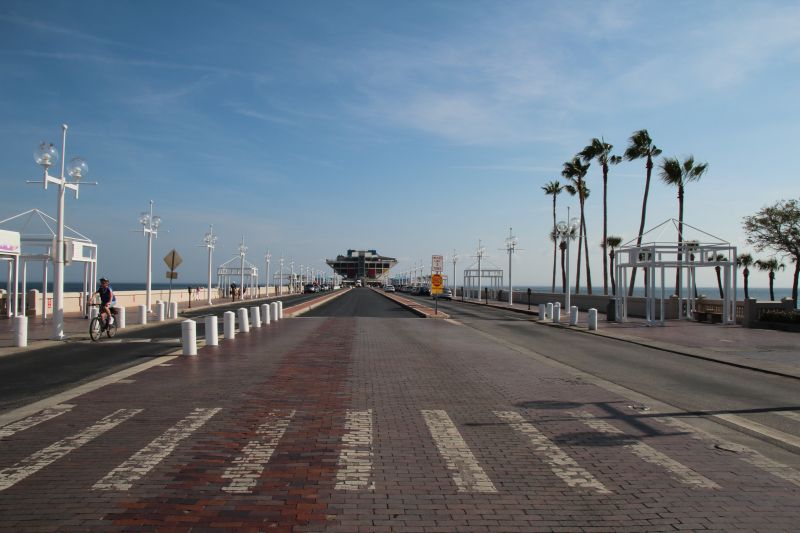Dort parkten wir am Pier und schauten uns selbigen dann an, mit seiner seltsamen umgestürzten Pyramide (sah aus wie der Bierpinsel in Berlin-Steglitz, falls den jemand kennt). Wir liefen den Pier entlang, schauten die Pelikane an, gingen dann in die Pyramide hinein und fuhren mit dem Fahrstuhl hoch aufs Aussichtsdeck.