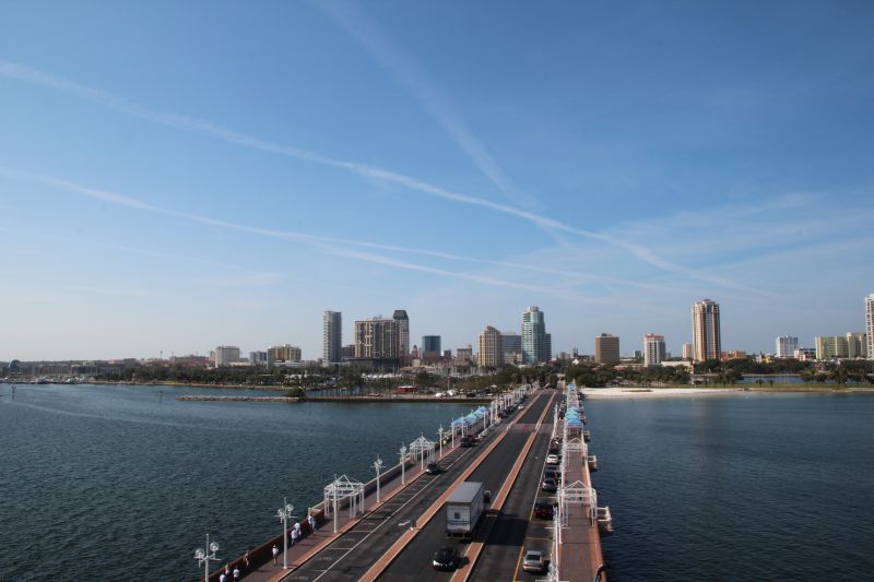 Von dort aus hatte man einen schönen Blick auf die Bucht und auf Downtown St. Petersburg, auf ein paar schöne Stände und in der Ferne konnte man sogar die Skyline von Tampa erkennen.