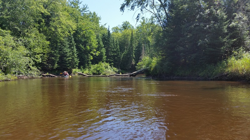 Eigentlich wollte ich bei Blaney Park die 77 in Richtung Seney nehmen, aber irgendwie hab ich das verpeilt oder das Navi schickte uns schon früher nordwärts, auf jeden Fall sind wir bereits über die 177 nach Norden gefahren und mussten dann letztendlich bei Seney wieder ein paar Meilen nach Süden abbiegen. Um die Mittagszeit kamen wir in Germfask an und buchten eine 2 1/2-stündige Kanufahrt auf dem Manistique River. Mit einer weiteren Familie aus Kansas ging es in insgesamt drei Kanus durch unberührte Natur.
