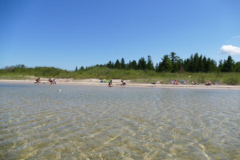 Kurz vor Mackinaw City fuhren wir in den Cheboygan State Park. Hier war ein wunderschöner Strand in einer Bucht mit zig Metern knietiefem Wasser und am Horizont konnte man bereits die Big Mac sehen, über die wir später fuhren. Als Chris und Dominic das Umgraben des Strandes für sich entdeckten, verging die Zeit wie im Flug und wir haben letztendlich knappe drei Stunden hier verbracht.