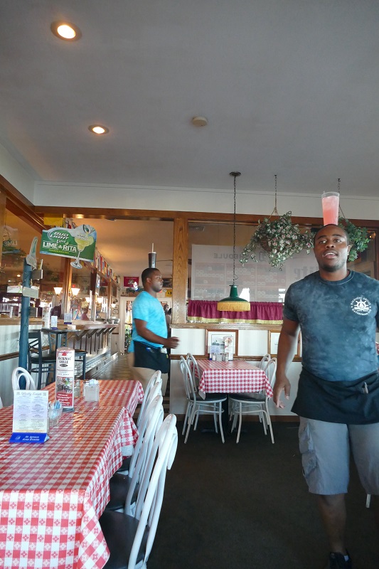 Dort, in St. Ignace, checkten wir in unser Hotel ein und suchten uns anschließend ein Restaurant für das Dinner aus. Die Wahl fiel auf den Mackinac Grille und war hervorragend, wie sich herausstellen sollte. Zwar waren die Plätze auf der Terrasse komplett belegt, aber die Kellner beeindruckten mit ihrer ganz eigenen Art, die Speisen und Getränke an die Tische zu bringen. Vor etwa 7 Jahren haben sie mit der Performance angefangen, 2011 ist das letzte Mal ein Glas heruntergefallen. Das Essen war sehr lecker und beim Bezahlen machte ich es den Kellnern nach und balancierte das Tablett mit der Rechnung auf dem Kopf.
